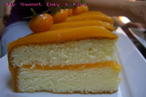 นำ ผงวุ้นมาผลมกับาคนให้ละลายแล้วนำไปตั้งไฟพอเริ่มเดือดเล็กน้อยใส่เนื้อ มะม่วงลงไปจนอยู่เรื่อยๆ จนซอสมีความข้นและผงวุ้นละลายดี หรือพอเริ่มเดือดเยอะก็หรี่ไฟลงแล้วเขี่ยวต้องคนอยู่ตลอดนะคะ พอเริ่มข้นปิดไฟ ยกลงเอาแช่น้ำให้คลายความร้อนไวๆ นิดนึงแล้วคนด้วยนะเพราะไม่คนวุ้นจะจับเป็นก้อน เอานิ้วมือลงไปแตะ หรือจุ่มก็ได้พอนิ้วทนได้ก็จัดการเอาไปราดเค้กที่นอนรออยู่ได้เลยแล้เอาเข้า ตู้เย็นไว้ถ้าต้องการให้อร่อยม๊าก มาก ควรแช่ข้ามคืนเลยจะอร่อย แต่ถ้าแช่ไม่นานเค้กเหมือนกับมันจะไม่ออกรสออกชาด ทดลองแล้วคะไม่อร่อย แต่พอข้างคืนไม่อยากบอกเหมือนว่ามะม่วงมันคายน้ำหวานออกมาเลยหอมหวานชื่นใจ จริงๆ